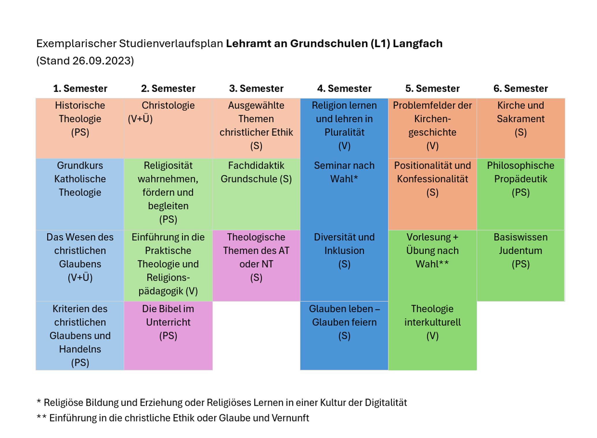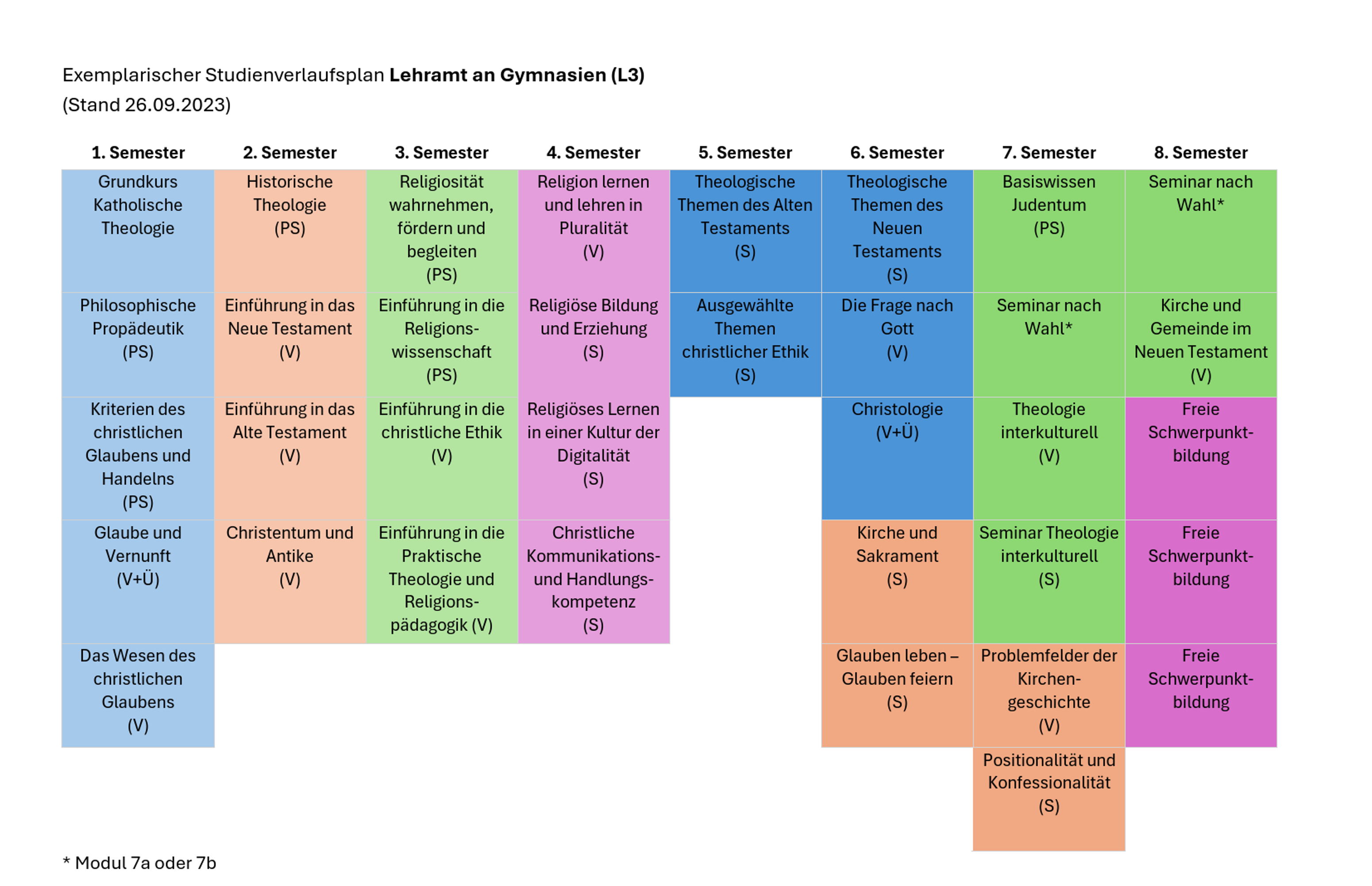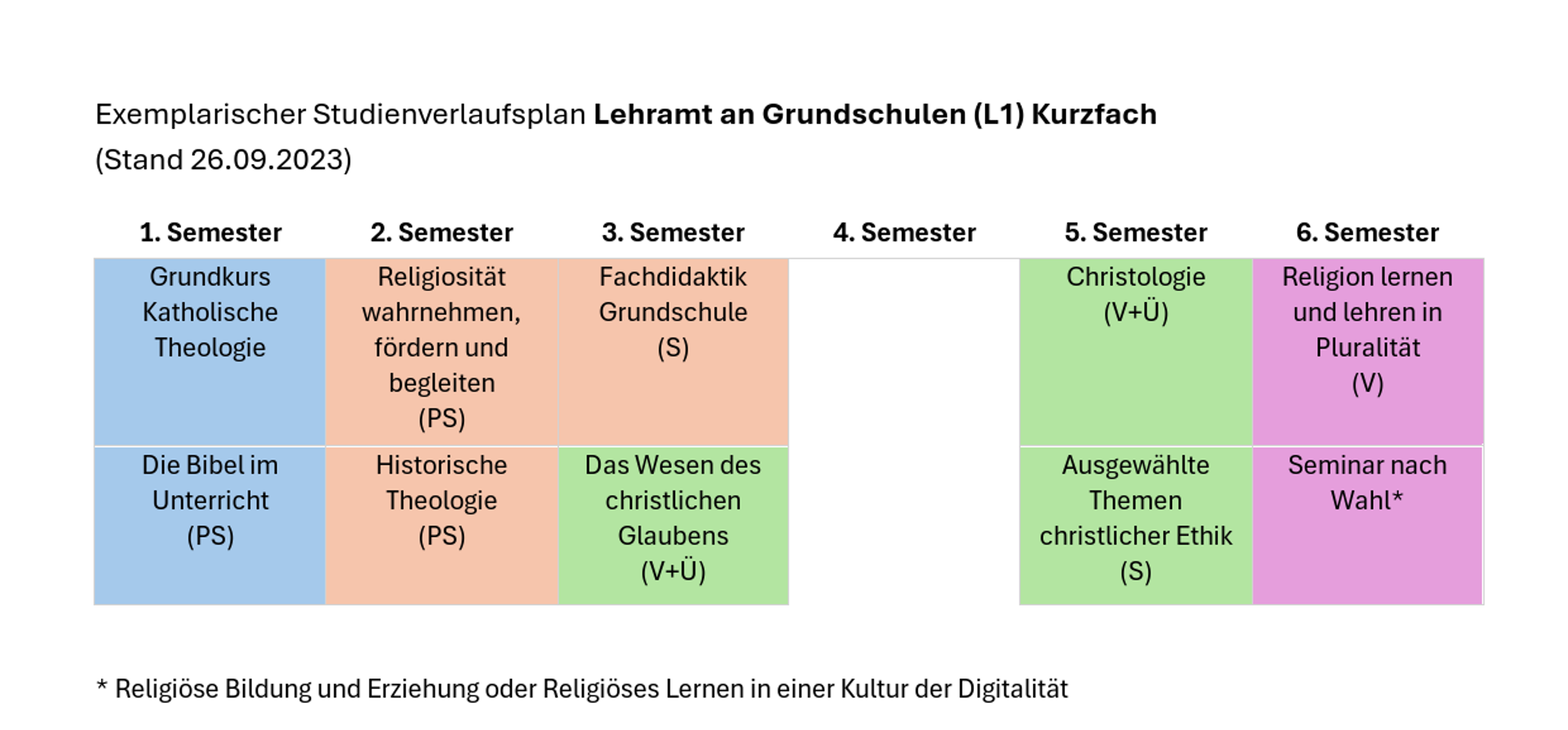 8 Semester, davon 6 katholische Religion |